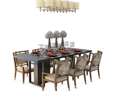 G25-0808中式餐桌椅吊灯组合