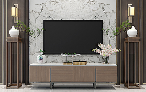 Z06-0113新中式现代电视柜中式花架花瓶
