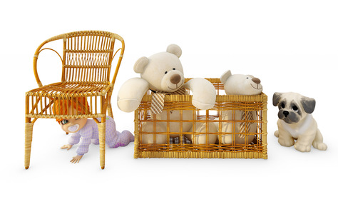 H15-0803现代藤编椅儿童玩具娃娃小熊组合