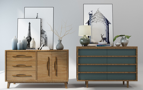 H55-1116北欧实木边柜玄关柜摆件组合