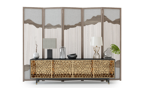 09 中式玄关柜屏风椅子饰品组合