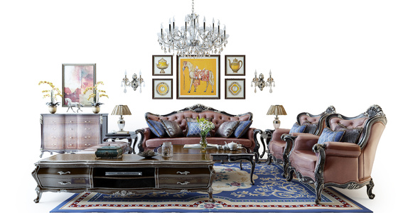 H-07古典欧式法式巴洛克古典雕花沙发组合电视柜挂画