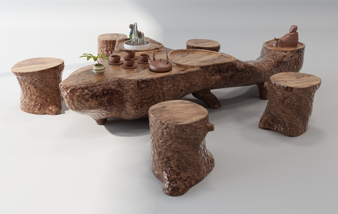 H32-1109中式木墩茶桌茶海