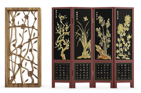 H08-1029梅兰竹菊木雕屏风
