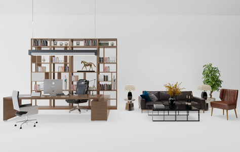 z06-0621班台办公桌书柜沙发组合
