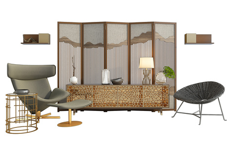 H11-1024现代中式电视柜中式屏风椅子饰品组合