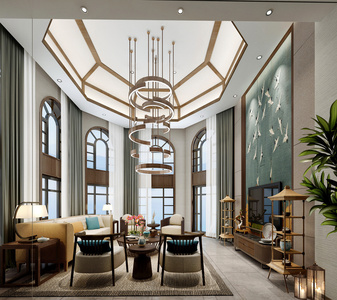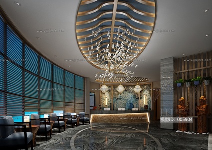 0831-005中式大堂接待台前台东南亚佛像树枝吊灯