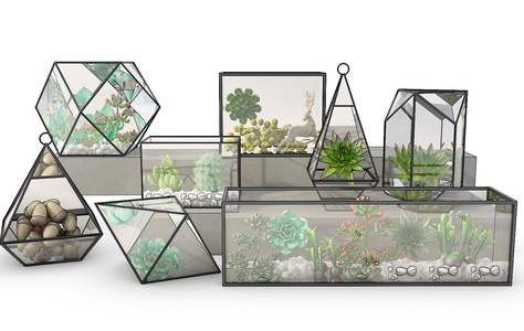Z15-1020现代多肉植物松果几何玻璃罩装饰摆件