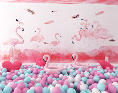H07-0627现代唯美少女心网红池海洋球火烈鸟美陈