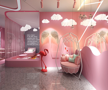 H09-0627北欧网红美容美甲店云朵吊灯吊椅火烈鸟天使翅膀