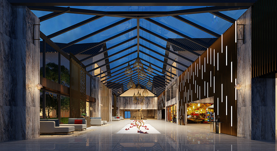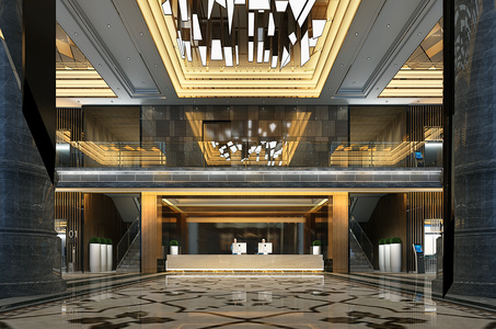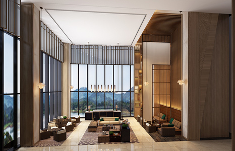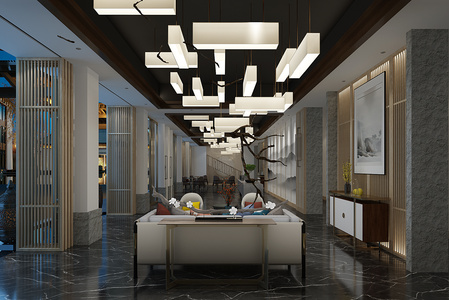Z09-0619新中式酒店大堂大厅服务台