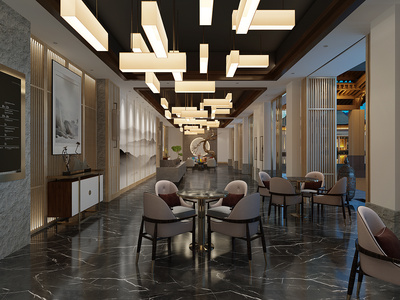 Z14-0619新中式酒店餐饮接待休闲大厅边柜吊灯休闲洽谈椅