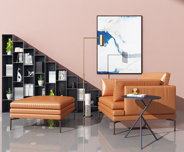 H07-0329现代单人沙发挂画装饰柜书柜组合
