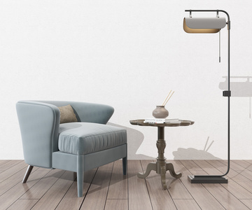 H09-0401现代单人沙发椅子边几茶几落地灯组合
