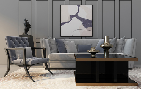 Z15-0302现代双人沙发休闲椅人面雕塑摆件组合