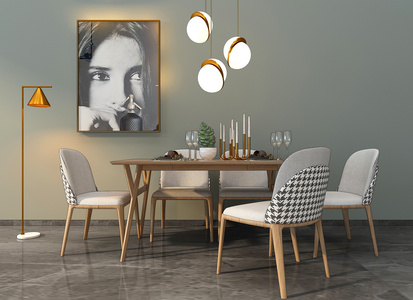 Z18-0302北欧现代实木餐桌椅吊灯装饰画餐具摆件