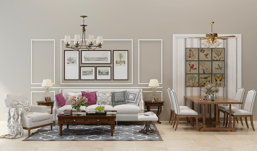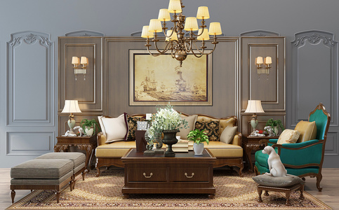 H01-0306美式欧式田园地中海沙发茶几挂画餐桌椅风扇灯