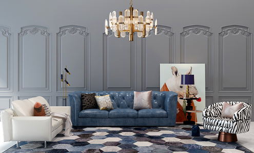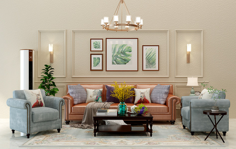 H05-0305美式欧式皮革沙发茶几吊顶空调