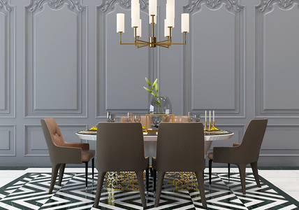 H15-0305美式欧式餐桌椅吊顶组合