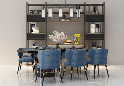 Z06-0227新中式简欧餐桌椅书柜组合