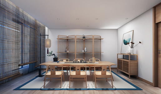 H21-0219茶楼包间茶桌椅落地灯屏风边柜竹帘