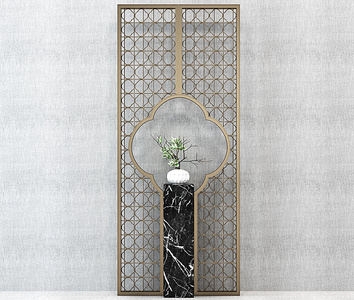 H09-0228新中式花格隔断屏风摆台