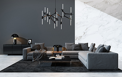 H21-0213现代客餐厅沙发茶几餐桌椅吊灯组合1