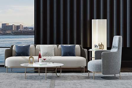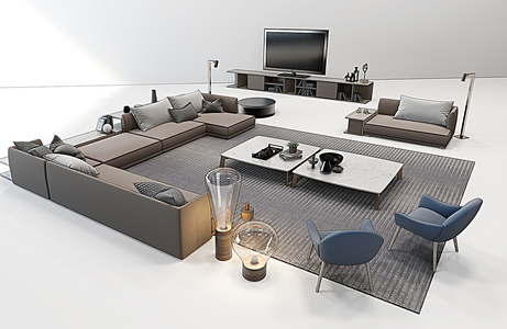 H14-0213意大利 米洛提 Minotti 现代沙发茶几装饰柜组合1