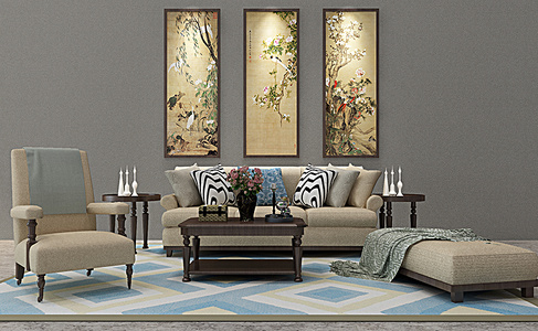 Z17-0113欧式美式沙发茶几椅子中式挂画