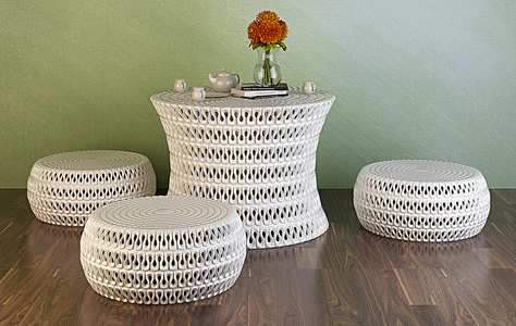 H04-0212编织藤编镂空茶几坐垫组合