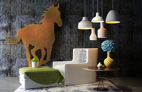 H11-0212单人沙发脚踏吊灯马挂饰组合