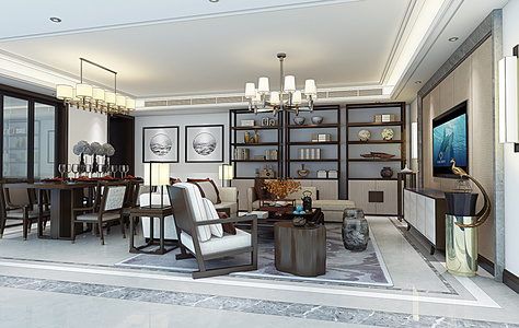 H19-0212新中式客餐厅书柜