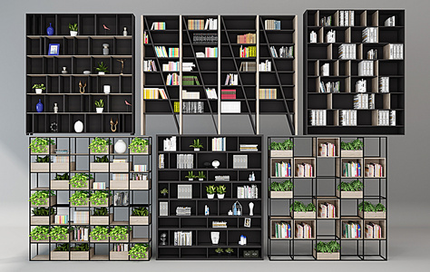 H20-0212现代铁艺书柜书架