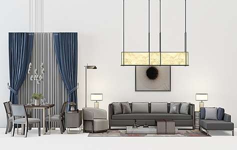 H21-0212新中式现代客餐厅沙发茶几餐桌椅软装组合