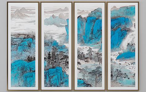 H02-0108新中式蓝色山水装饰画组合