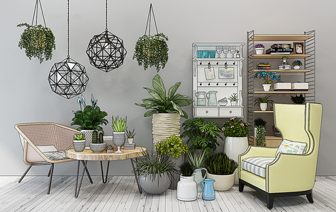 H58-0103现代阳台花房植物盆栽花架组合