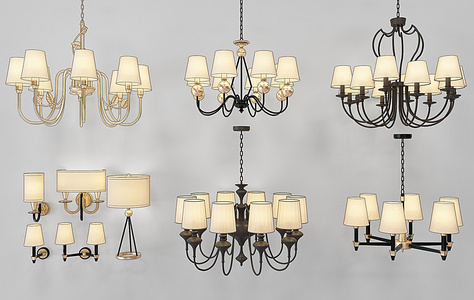 H60-0103美式欧式铁艺吊灯壁灯台灯组合