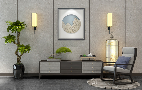 H25-0102新中式电视柜子落地灯摆件
