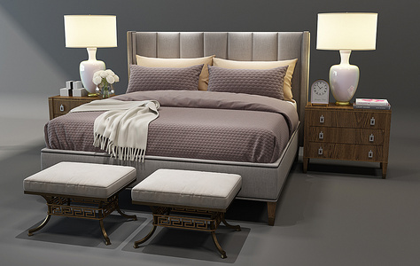 H02-0104欧式双人床床头柜组合