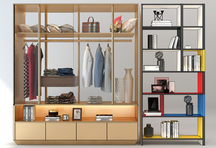 H26-1221现代衣柜书柜书架组合