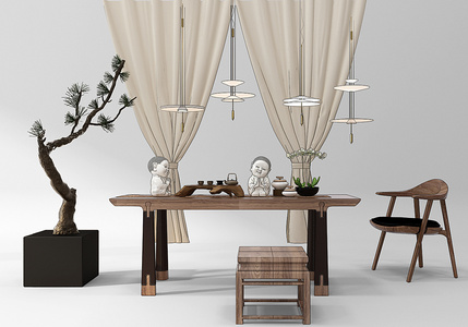 Z31-1206中式茶桌椅茶具佛像
