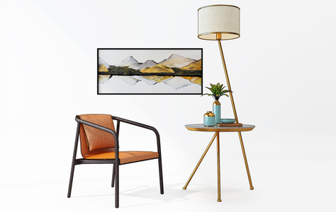 H41-1120现代落地灯茶几椅子挂画摆件组合