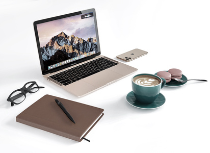 现代苹果电脑 笔记本手机 咖啡杯子