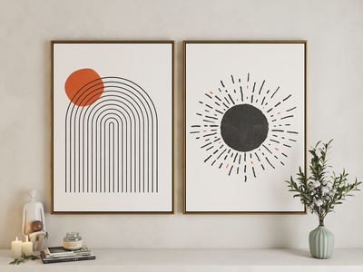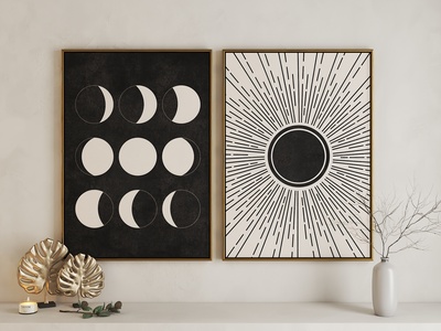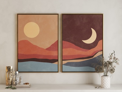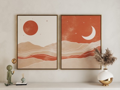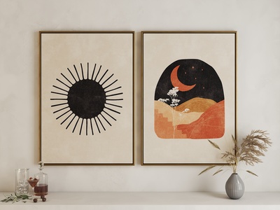 现代日月组合艺术挂画