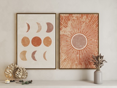 现代日月组合艺术挂画