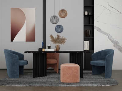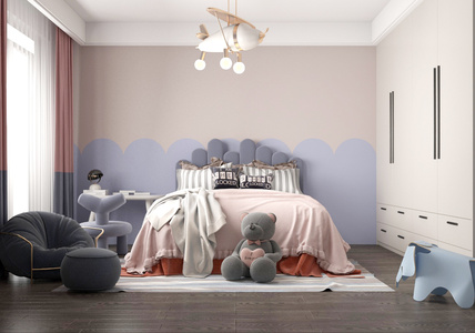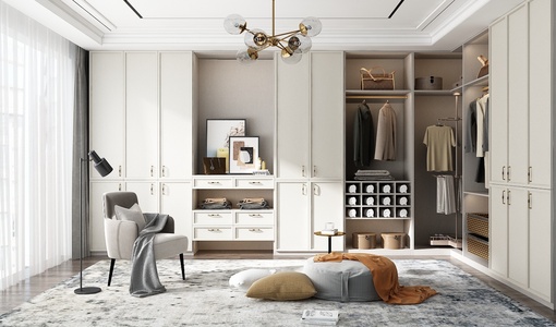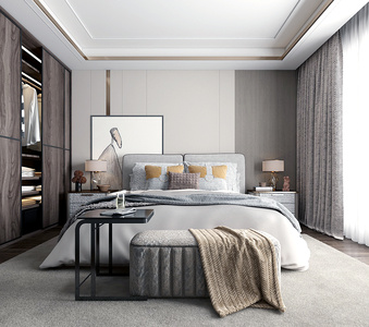 北欧现代轻奢卧室双人床,床尾凳,床头柜