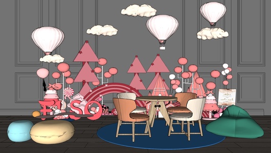 儿童桌椅气球玩具美陈,热气球,云朵-