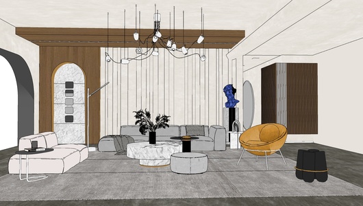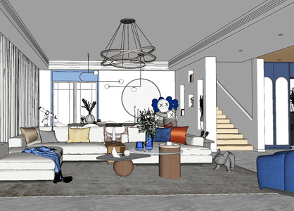 z10-0511现代客餐厅,kaws公仔,艺术雕塑,转角沙发茶几哈皮狗