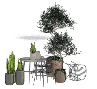 z03-0514户外植物盆栽花盆,绿植铁艺桌椅