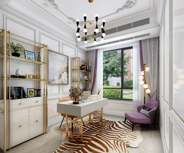 H21-0418简欧式法式欧式书房毛皮地毯落地灯书柜